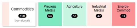 With a lot uncertainty in the markets, we have increased our holdings in precious metals this year. Gold and silver are historically uncorrelated to the overall market and can be a great place to “hideout” during weak markets. Precious metals currently have the strongest relative strength in the commodities space as indicated below. This chart is provided by Dorsey Wright & Associates and helps us when allocating client money.